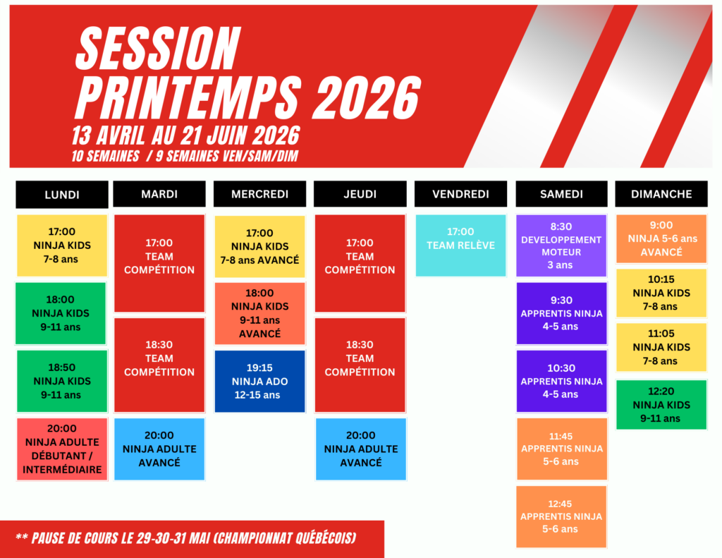 PAS DE COURS: 29-30-31 Mai (Championnat Québécois)